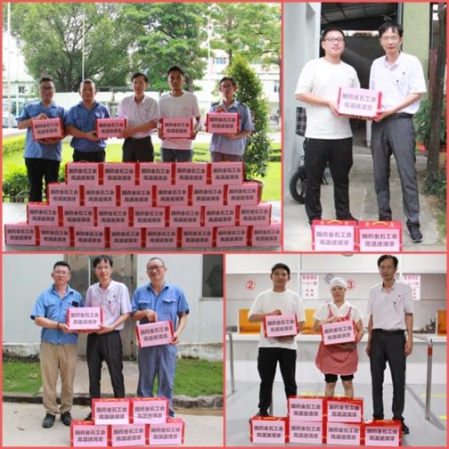 工會(huì)主席黃揚(yáng)彬手持飲品,將一箱箱滿載關(guān)懷的王老吉涼茶送到電儀班、鍋爐班、食堂班等員工面前,一句句“辛苦了!”溫馨有力,滿懷著公司對(duì)員工深切的關(guān)懷。