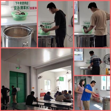 高溫難耐,食堂班為每一位員工精心準(zhǔn)備了綠豆冬瓜湯、八寶粥等解暑甜湯。食堂前廳,舀取甜湯的員工臉上幸福洋溢,他們或剛從繁忙的工作中抽身,或是準(zhǔn)備在休息后開(kāi)展下一項(xiàng)工作。這一碗碗解暑甜湯,在酷夏中宛如“解暑使者”,為員工驅(qū)散了夏日的酷熱與疲憊,帶來(lái)清涼與舒適。
